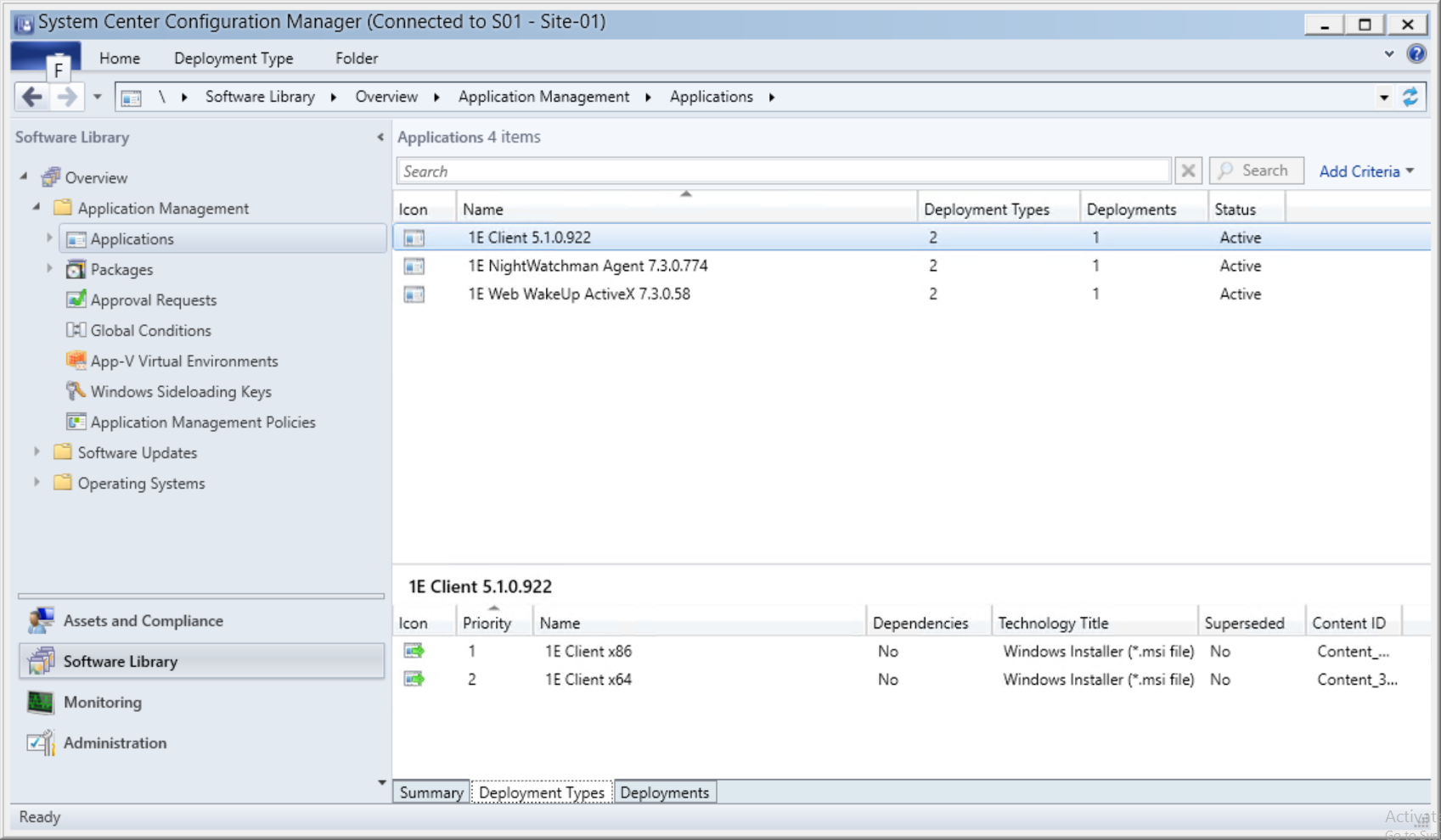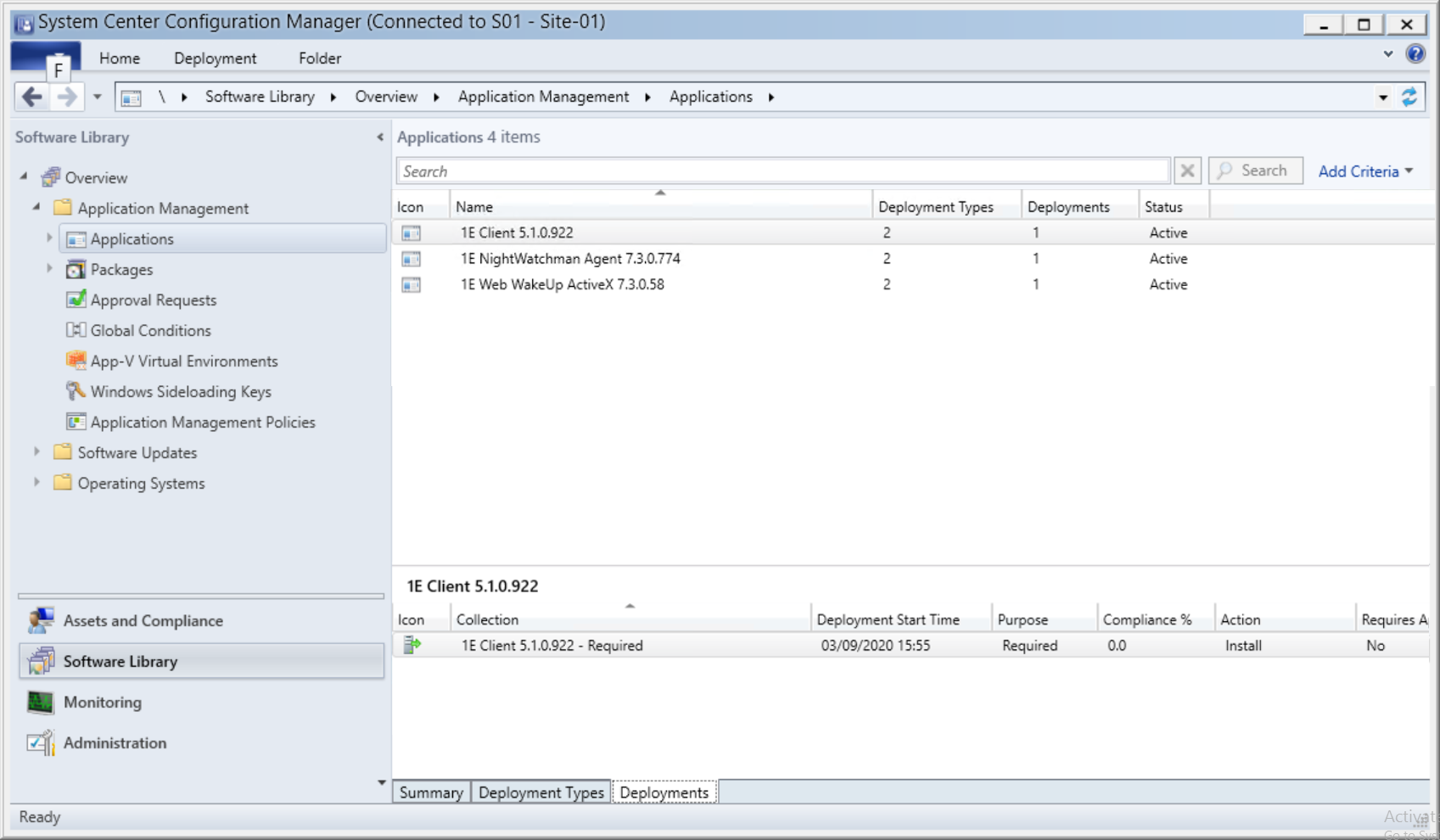 A Configuration Manager application is created for each 1E Agent that was selected in the CDA wizard.