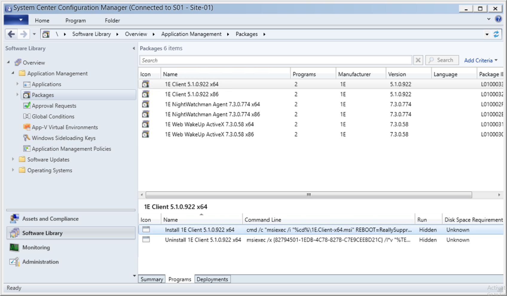 Click on each package to view its Summary, Programs and Deployments tabs, you can move these packages into a folder. Packages are created primarily for use in Task Sequences, therefore the CDA wizard sets the Allow this program to be installed from the Install Package task sequence without being deployed property, and does not create collections or deployments.