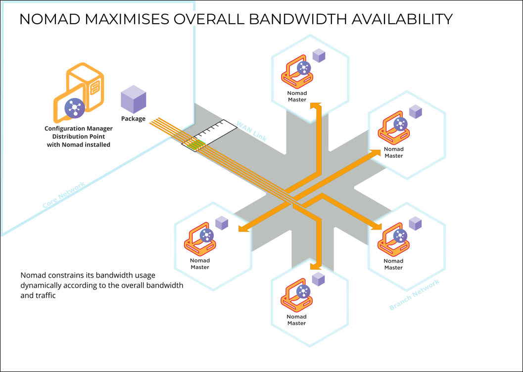 Content Distribution ensures that software packages are only ever copied once per branch over the WAN, utilizing local computers as temporary file caches to distribute the software locally. This reduces the bandwidth required for delivering software updates and means that small offices or sites connected by poor network links can receive software updates more reliably.