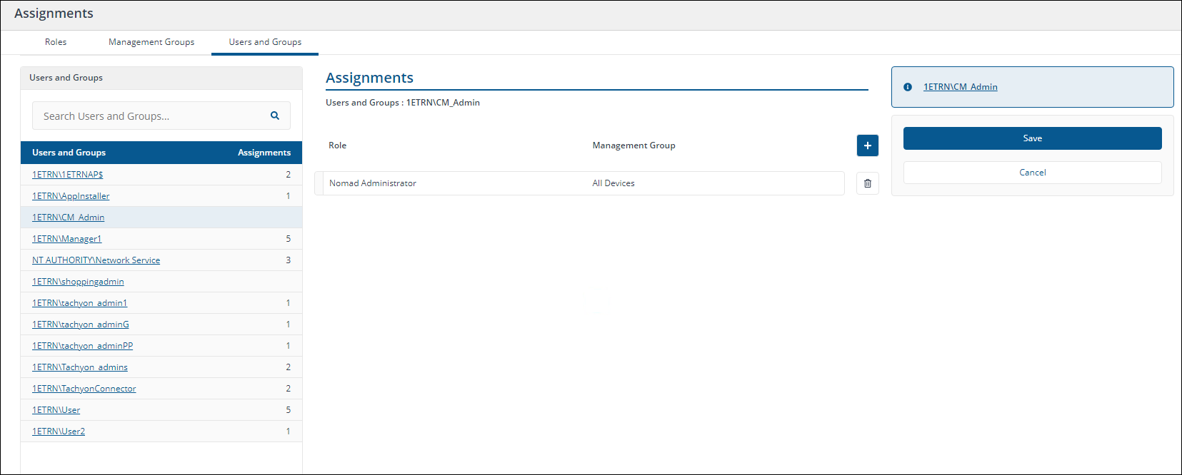 A 1E user can therefore be a domain user account or a security group. Groups are not mandatory because users can be assigned to roles and managed within 1E instead of AD, or a combination.