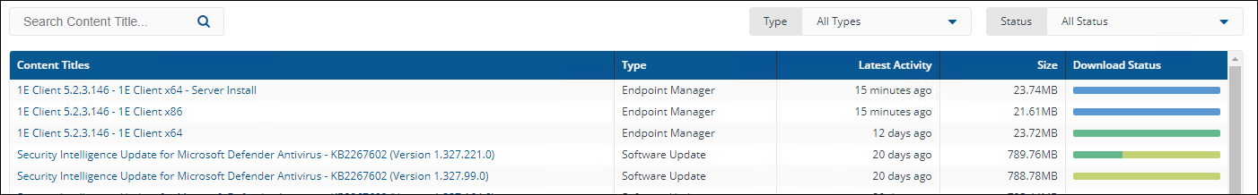 Latest Activity: Indication of how long ago the latest download activity for the selected Content Title occurred on this device.