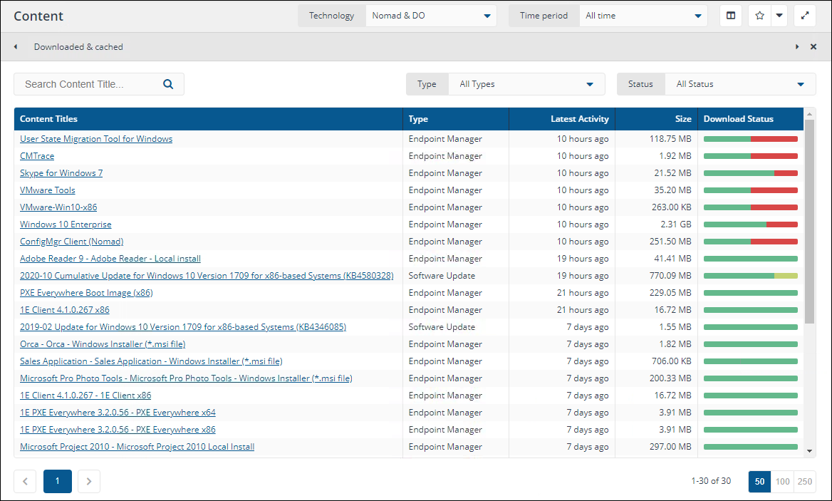 Events generated for software updates downloaded by DO include the Content Title in the event as this is determined at the client. These events are represented immediately in the Content Distribution app.