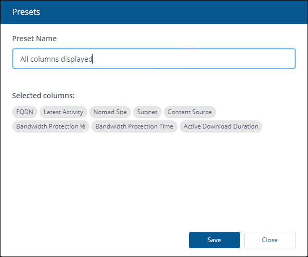 6. Once saved, you can select your saved views using the Manage/Apply Presets control or edit them by clicking Edit presets.