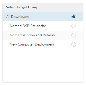 Allows the details on the main page to be filtered based on the target group. By default, the main details page shows data for All Downloads of the Content Title.