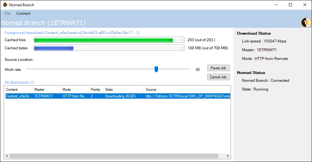 The Nomad Download Monitor tool (also known as NomadBranchGUI) is useful for administrators for troubleshooting downloads as they view the status of downloads on local and remote Content Distribution client devices. Refer to Installing the Nomad download monitor for details of how to install Download monitor in either basic or advanced mode.
