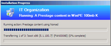 While Pre-stage content Using Nomad is running, a progress bar is displayed on the Installation Progress dialog on the target machine:
