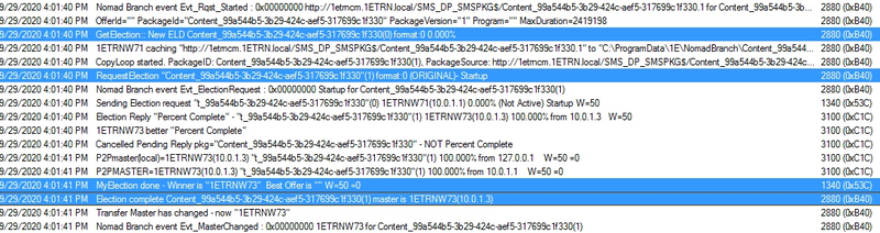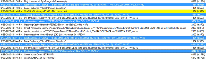 On the same computer 1ETRNW73 we can see other clients initiating an election as they process their content request.