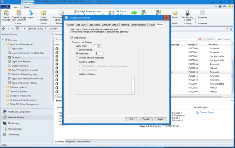 Nomad integrates with the Configuration Manager (CM) client content download process. When Nomad is installed, it registers with the Configuration Manager client as an Alternate Content Provider (ACP), which means the CM client will use Nomad as an alternative to BITS when it requires content if Nomad is enabled for the requested content object. Nomad can be enabled on individual packages (including Driver Packages, Operating System Images, Operating System Upgrade Packages and Boot Images) and Task Sequences.