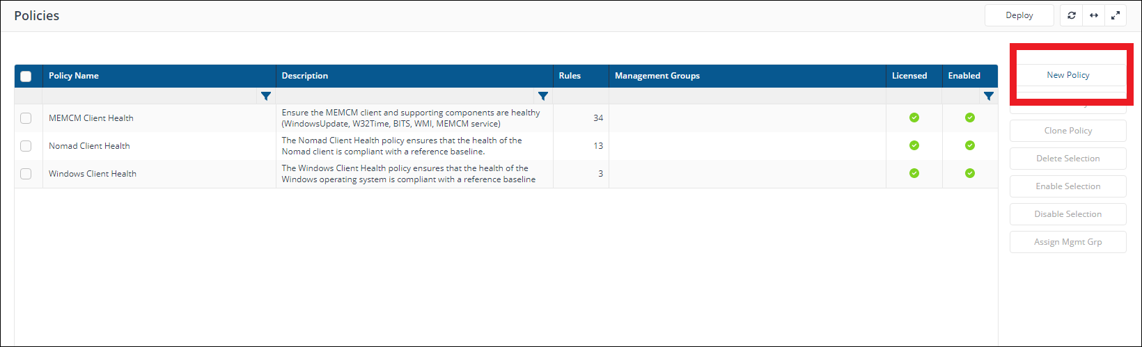 Click New Policy, enter a name and description for the policy and click Save.
