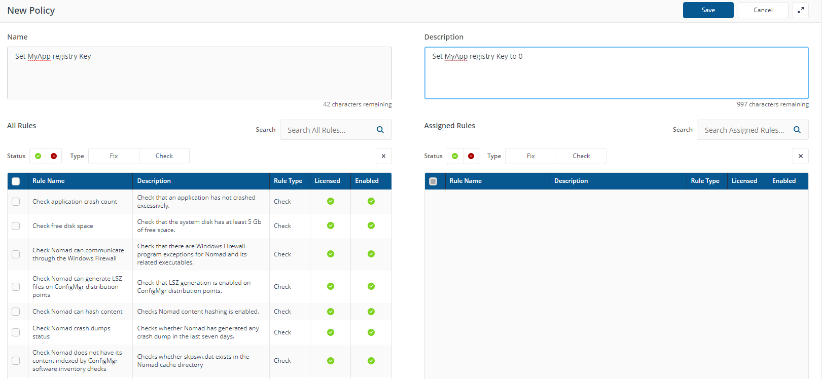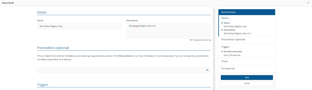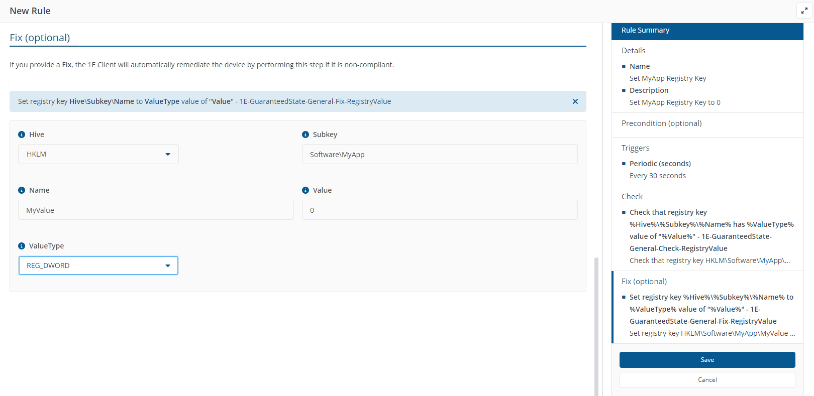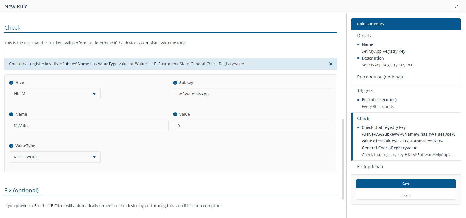 In the Fix section, the fix rule will be identical to the check rule. This means that if the registry is not consistent with the check rule, it will be made consistent.