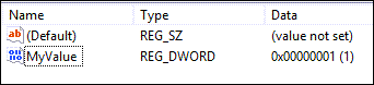 In the registry editor on the device, you can see that the Value name and Value data exist.