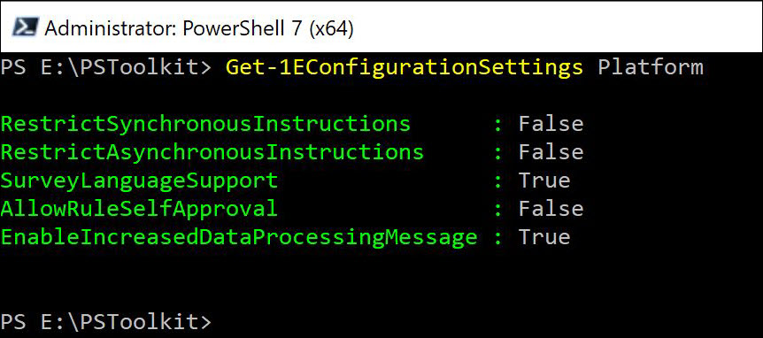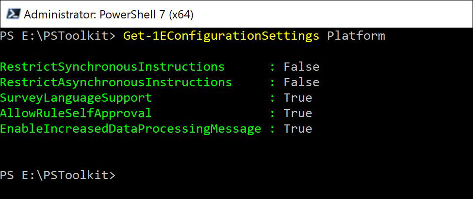 Get-1EConfigurationSetting Platform AllowRuleSelfApproval