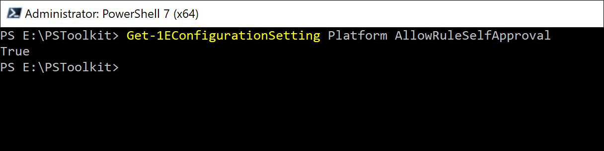 You can now read back the value of AllowRuleSelfApproval using Get-1EConfigurationSetting: