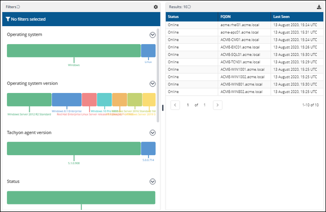 Click on the Operating system type bar with the Windows label. A new OsType=Windows filter appears in the top row and the Results then show only the 11 Windows server type devices.