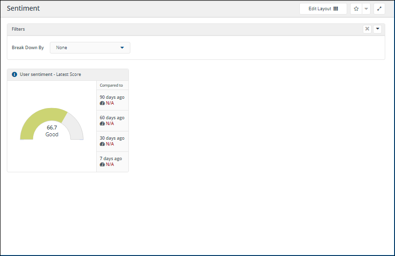 To display your own User Sentiment Surveys on the Sentiment page you click on the Edit Layout button to add the new metrics that are related to the Surveys. Once you have configured