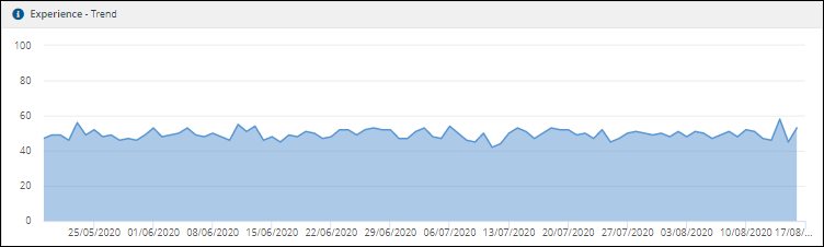 Finally you can use the Experience - Trend chart to check how well your enterprise is performing over time in terms of how your end-users see it. You could use this chart to help gauge progress on any improvement programs you might have put in place or act as an advanced warning that there are underlying issues that are affecting your end-users and need resolving.