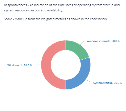 The Responsiveness score is derived from the scores of Windows internals, system startup, and Windows UI.