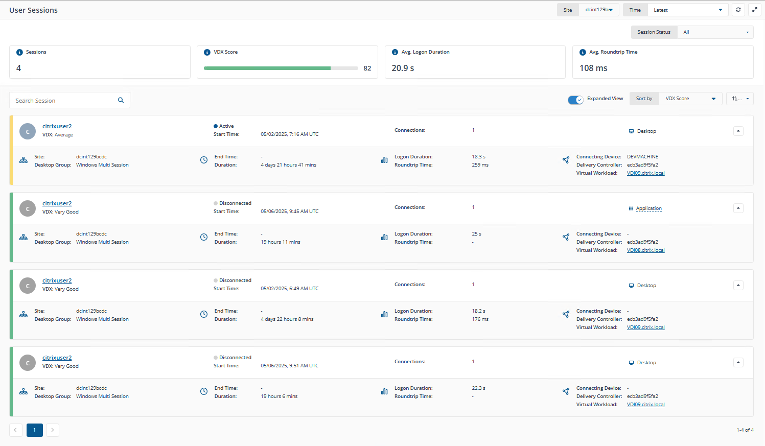 We are excited to introduce support for Citrix Cloud support in this release of Virtual Desktop Experience (VDX). This enhancement significantly expands VDX capabilities to Citrix Cloud environments, providing VDI administrators and digital workplace teams with comprehensive visibility and management tools for Citrix Cloud deployments.