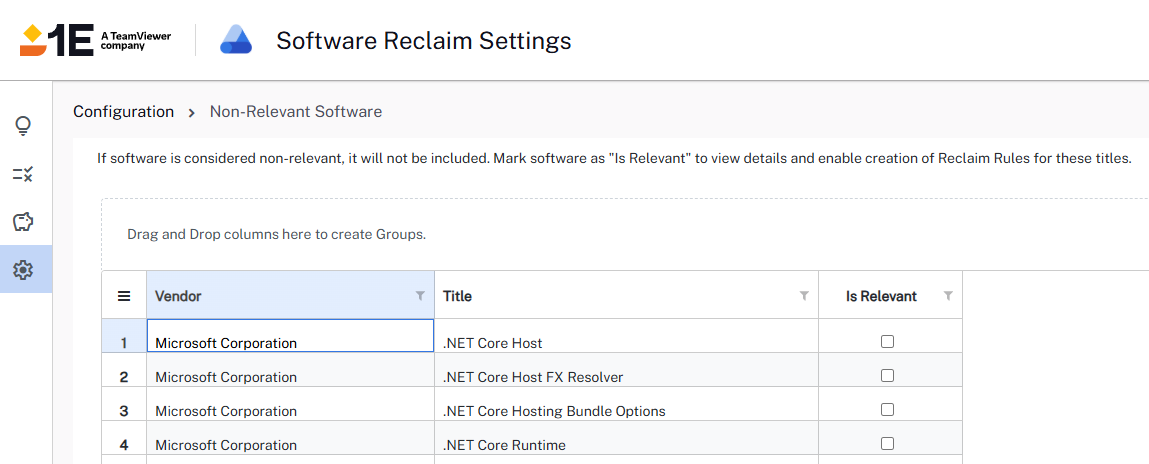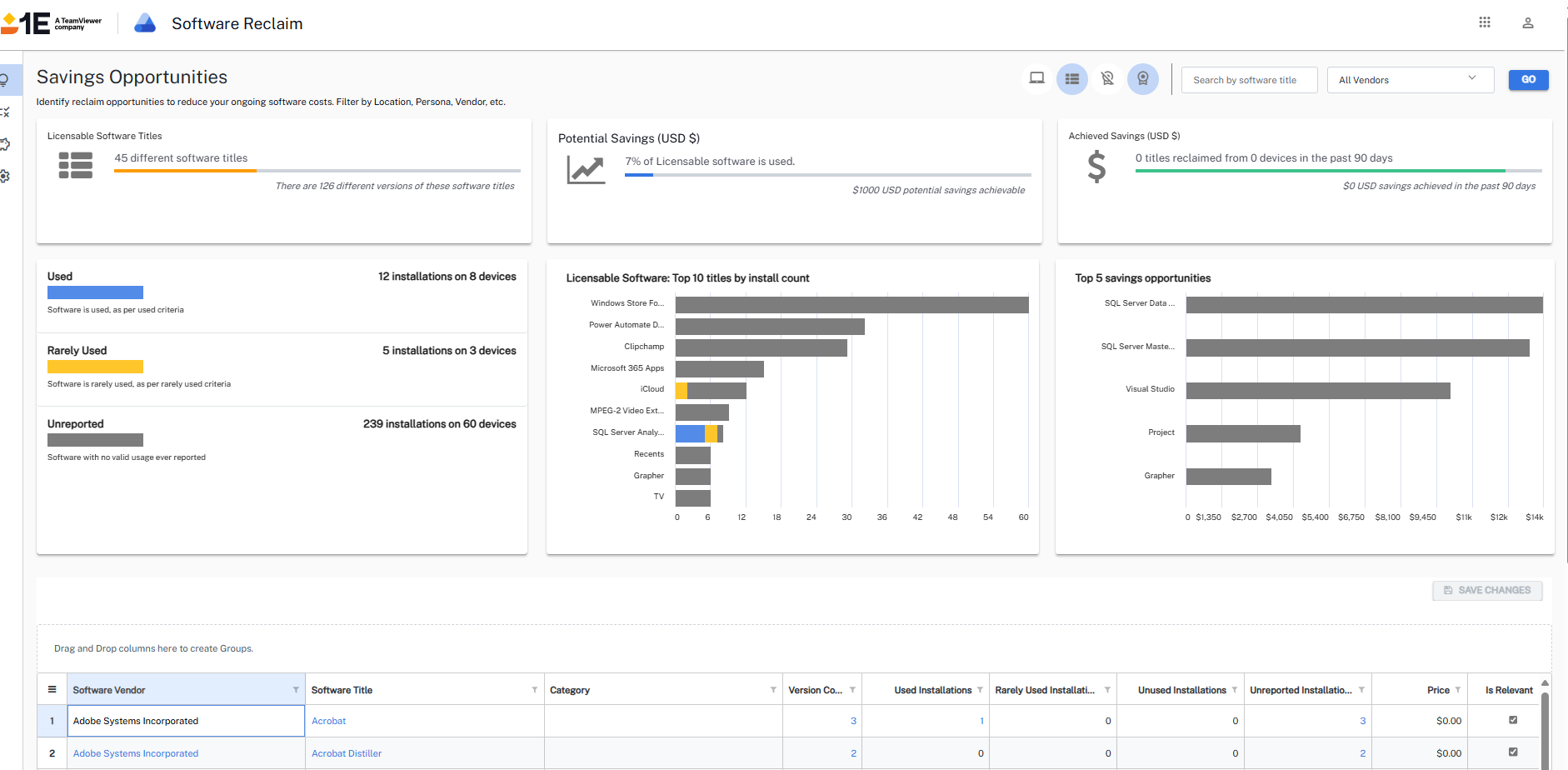 Users can now mark software titles as non-relevant, moving them to a separate list. Refer to Savings Opportunities.