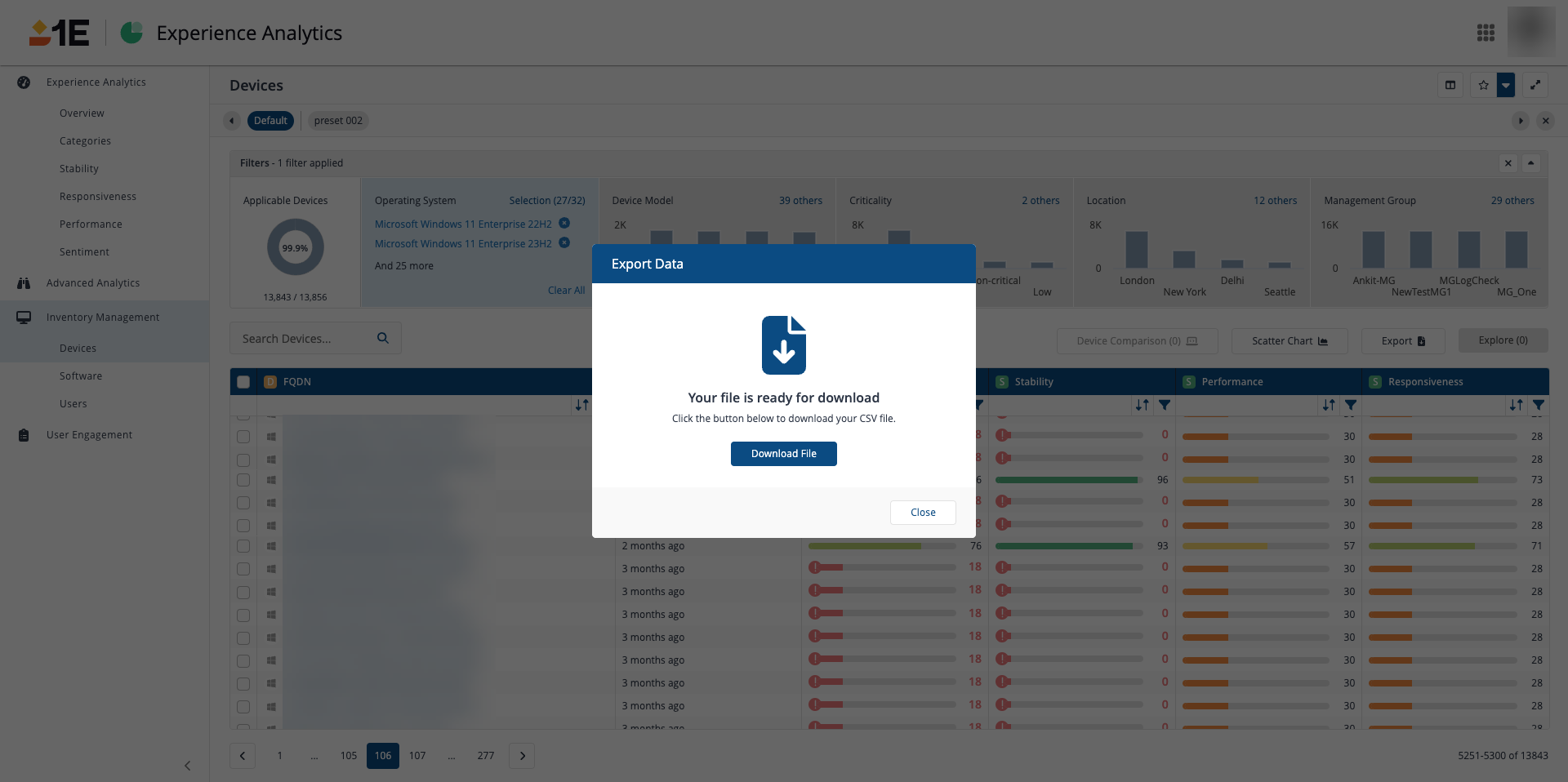 With this update, users can export system data such as performance, stability, and endpoint information for further analysis, whether for IT, security, or management purposes. The export function is designed to be efficient, supporting a CSV format, ensuring seamless integration with data analytic tools.