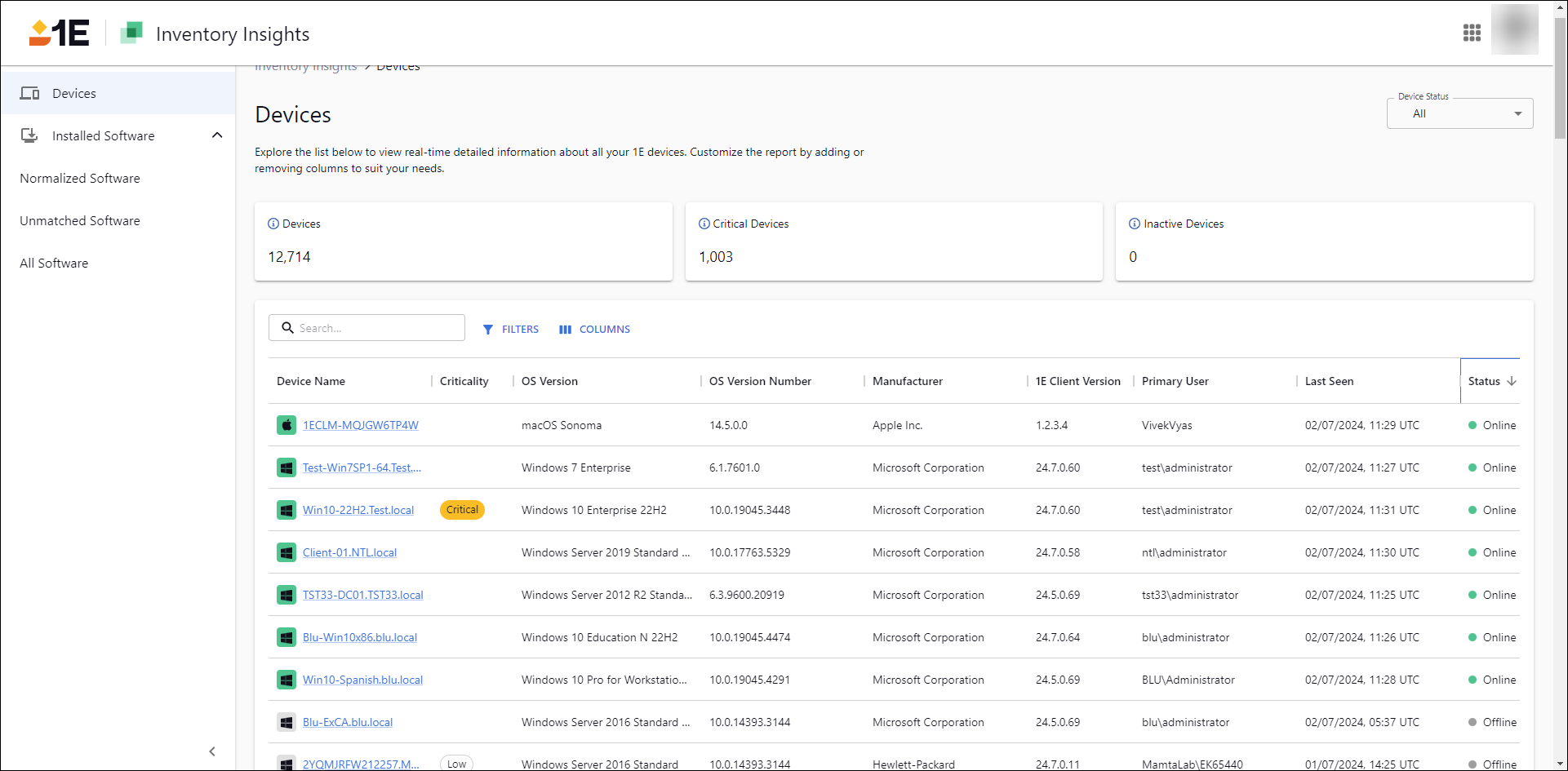 Device Inventory has been added to Inventory Insights. This is similar to the Devices view in Endpoint Troubleshooting, but we have extended the available attributes that can be selected. Device Inventory includes all 50 attributes that are available for a device. For this release, Device Inventory will be available in both Inventory Insights and Endpoint Troubleshooting. We expect that the Device Inventory will be removed from Endpoint Troubleshooting in a future release. Refer to Device Inventory.