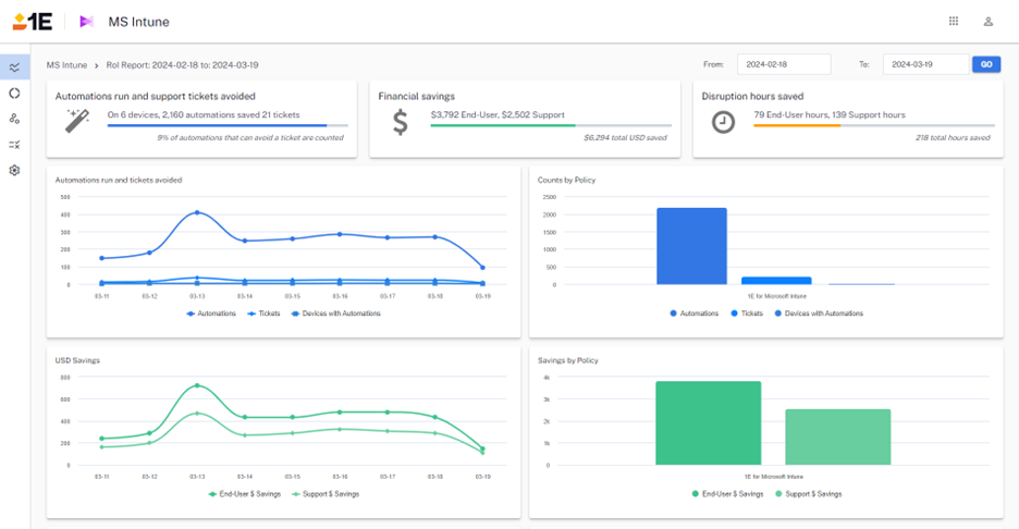 - RoI dashboard to show the effectiveness of Endpoint Automation, and provides a view on the following: