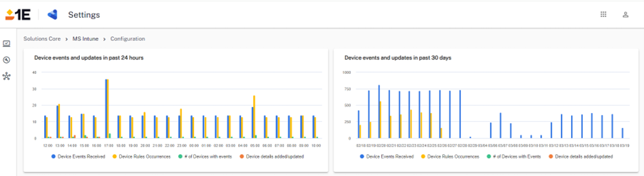 The Device Connectivity dashboard now shows the number of devices added/updated, device events, and rules that occurred in the past 24 hours and the past 30 days.
