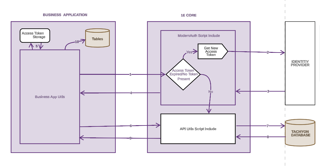 - Communication between 1E ServiceNow applications and the 1E Platform is done so through the 1E Core APIs.