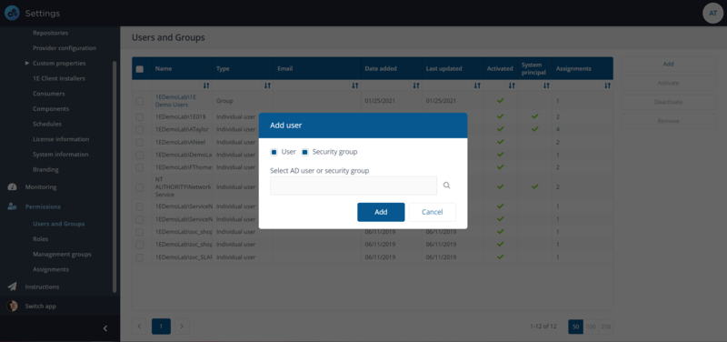In our example we will add a user to 1E, which must already exist in AD, that will have the following function and the following system roles applied:
