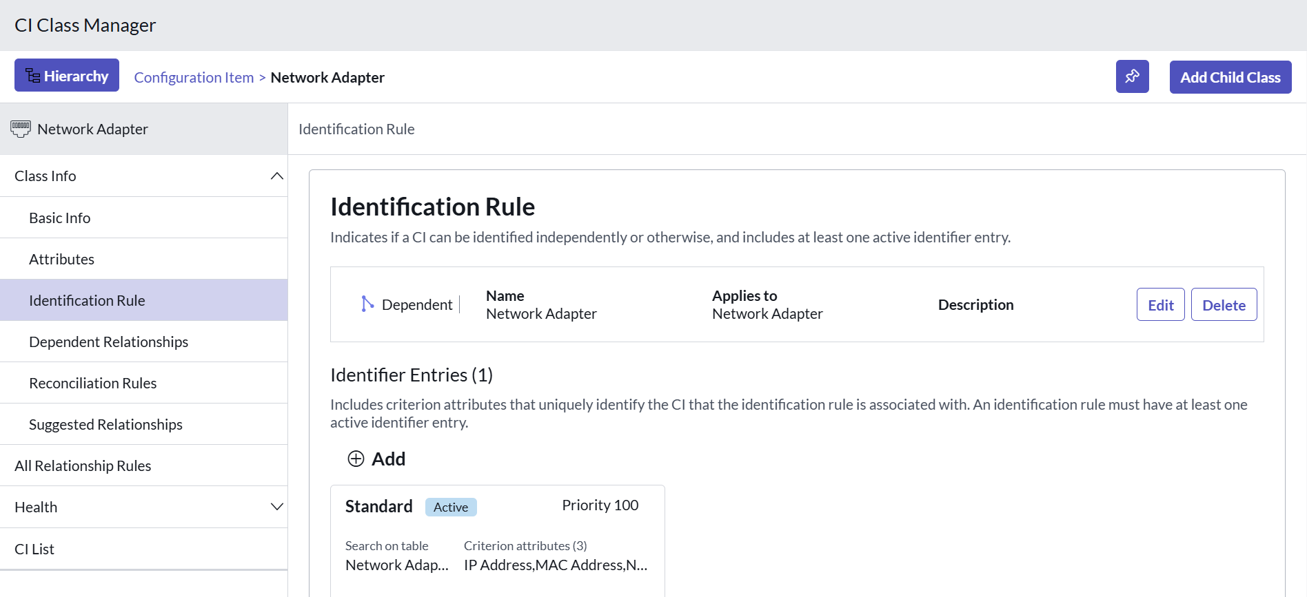 - From the CI Classes list, search for Network Adapter and select it.