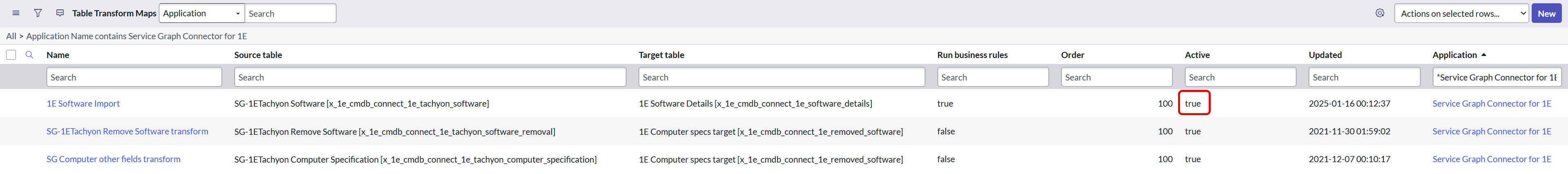 - Filter the list by the Application column using Service Graph Connect for 1E and click Run.