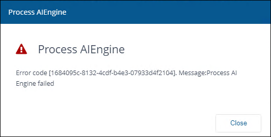 If you see a red warning triangle in the Process log, this indicates a problem. The most common reason for the Process AIEngine to fail is due to insufficient memory when it runs, refer to Memory requirements table.