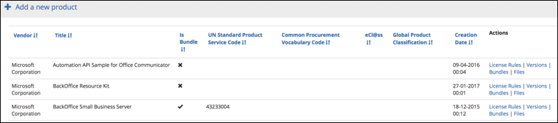 On the Products screen, find the item from the list, for example, Microsoft BackOffice Small Business Server.