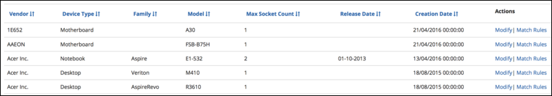 List of Catalog devices, click Managing match rules to update details of a device or Match Rules to edit an existing rule or associate a new rule with it.