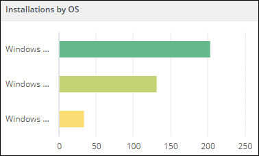 The user has the ability to drill down into each installation for each group by clicking on each color bar. This updates the other fields on the dashboard with data related to your choice. Our example shows details for Windows Server 2016-1607 Standard.