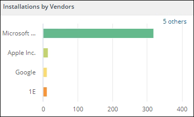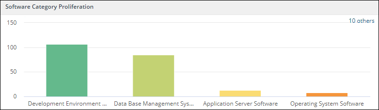 The user has the ability to drill down into each installation for each group by clicking on each color bar. This updates the other fields on the dashboard with data related to your choice. Our example shows details for Development Environment Software.