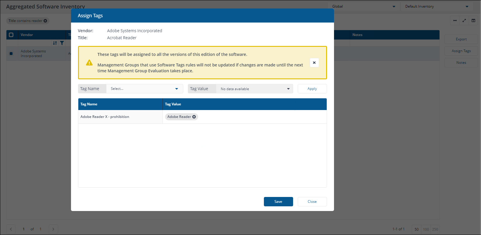 If an administrator adds or modifies Software Tags or associations, they will have to run the Management Group evaluation report again to see the updated devices reflected in the Inventory. Refer to the Software Tags page.