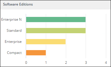 The user has the ability to drill down into each installation for each group by clicking on each color bar. This updates the other fields on the dashboard with data related to your choice. Our example shows details for Standard editions.