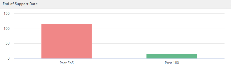 The user has the ability to drill down into each installation for each group by clicking on each color bar. This updates the other fields on the dashboard with data related to your choice. Our example shows details for Past EoS.