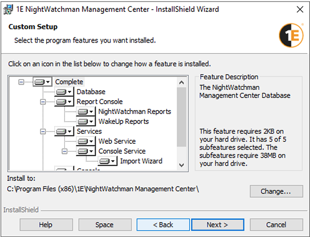 By default, these components are installed to C:\Program Files (x86)\1E\NightWatchman Management Center\