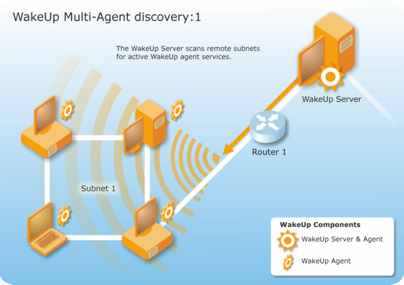 • WakeUp multi-agent mode is necessary if you want to use the extended reporting, policy refresh, automatic shutdown following a wake-up and the last man standing feature. It is also used if your network does not allow support for directed broadcasts and you do not want dedicated computers that are set to be on permanently.