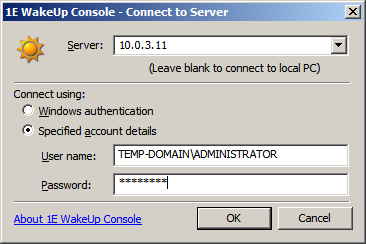 C:\Program Files\1E\WakeUp\Server>WakeUpAMT.exe –username=admin –password=admin