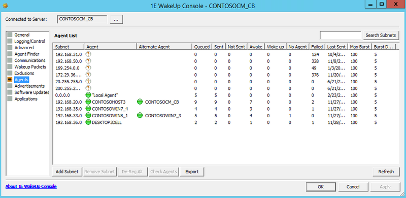 WakeUp Configuration (for details see Configuring SubnetOverride on a WakeUp Agent) |