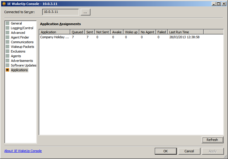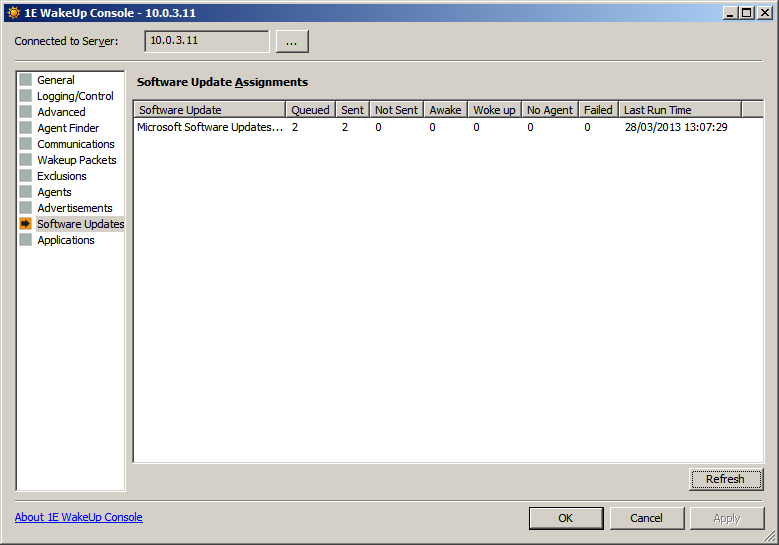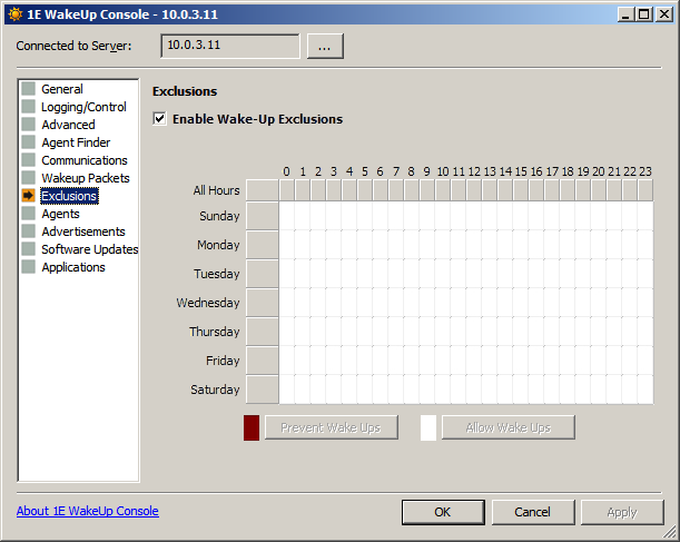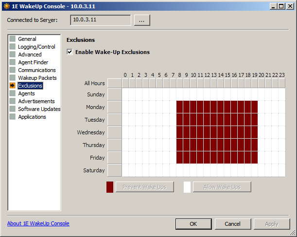 Configuration is managed from the WakeUp Console (started from the WakeUp program group on the Start menu). Configuration options vary depending on whether you are using Configuration Manager or NightWatchman Management Center.