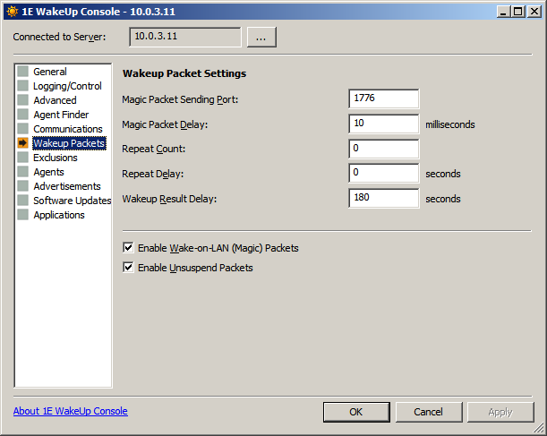 The Server method requires the registry for the WakeUp Agent on the WakeUp Server(s) to be configured. The Agent method requires the registry for the WakeUp Agent on the 1E Agents to be configured.
