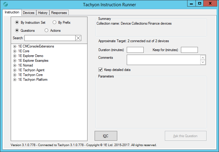 In our example, we will leave both devices selected, click back on the Instruction tab and click the Ask this Question button to run the question configured in the previous heading.