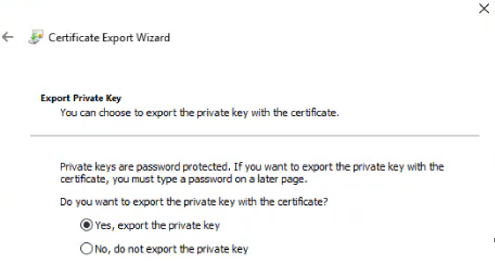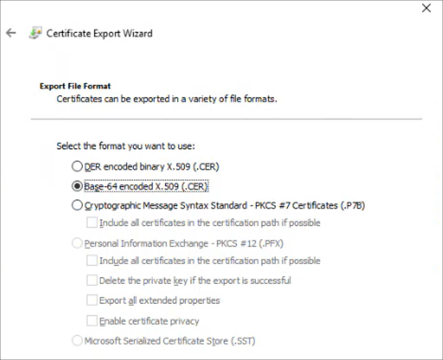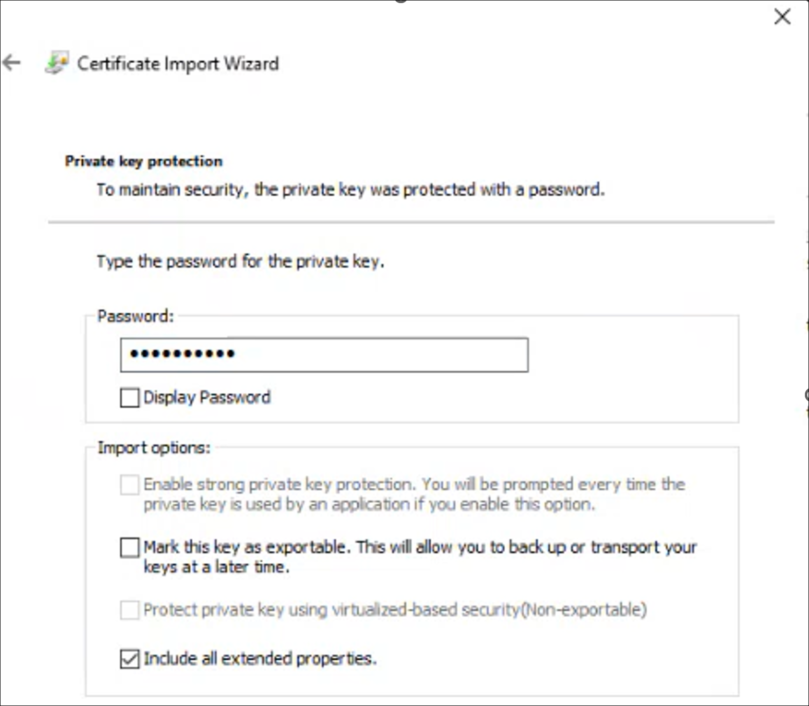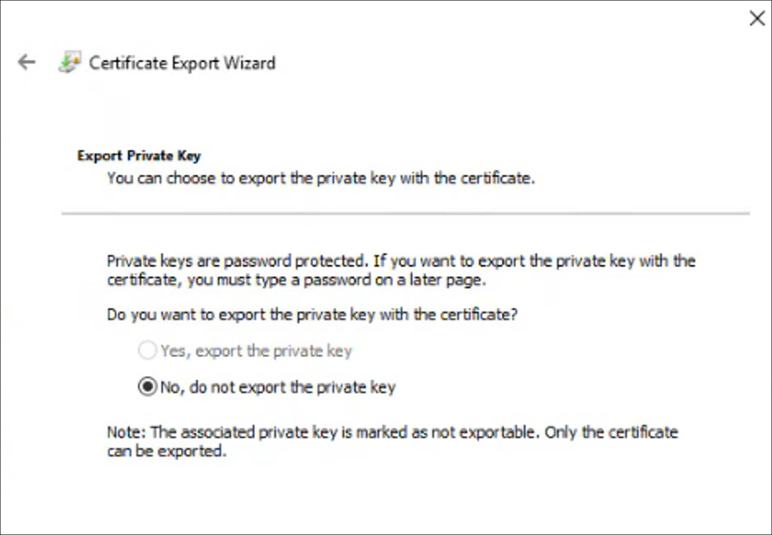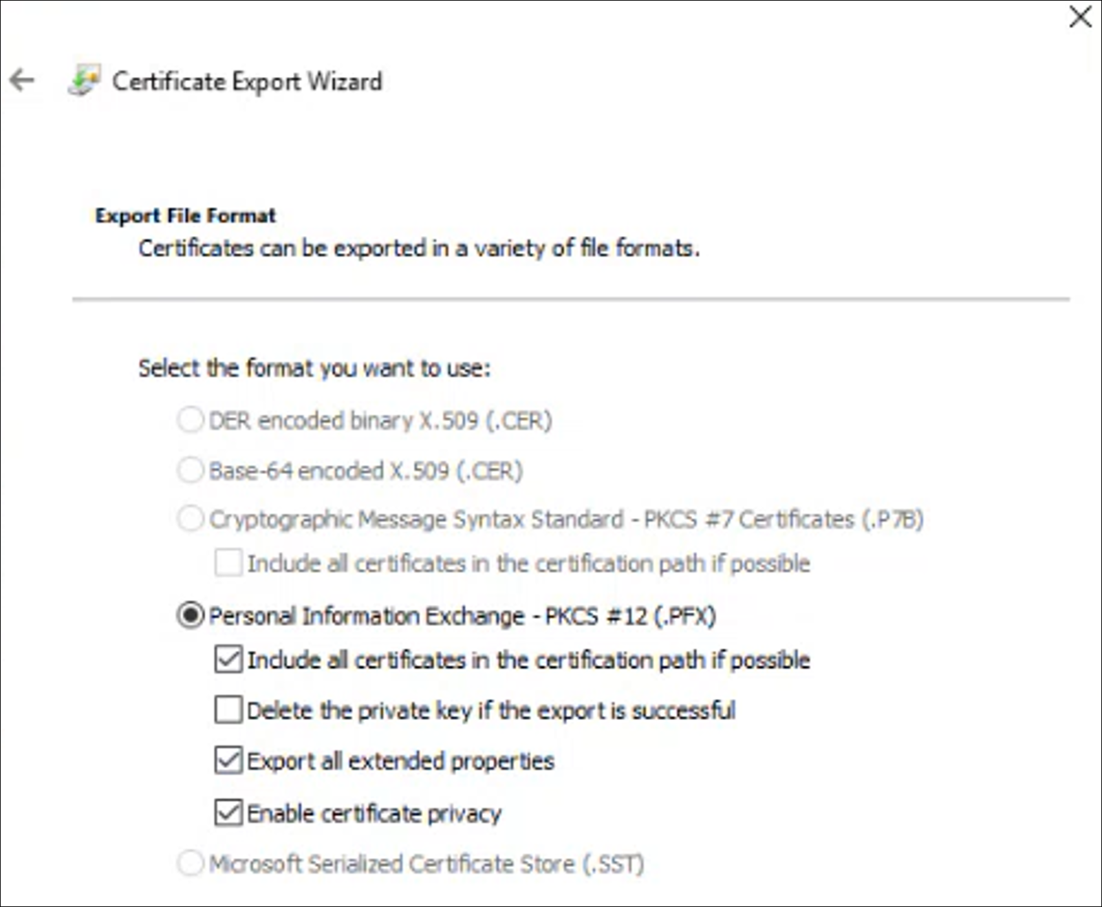 For workgroup and non-Windows devices, the private key must be exportable