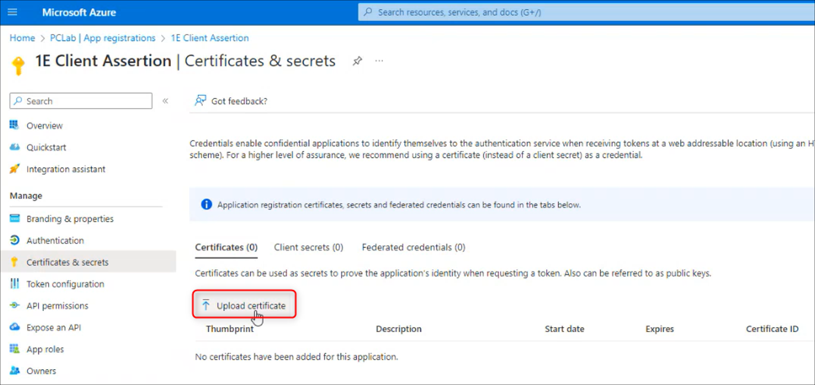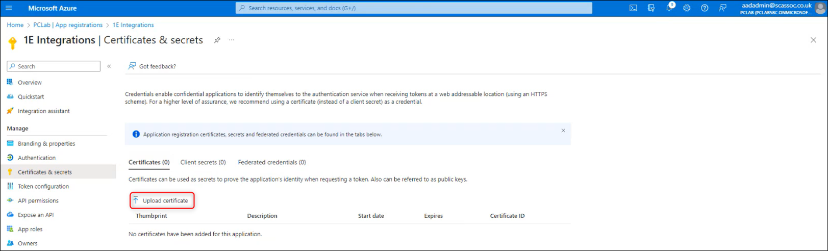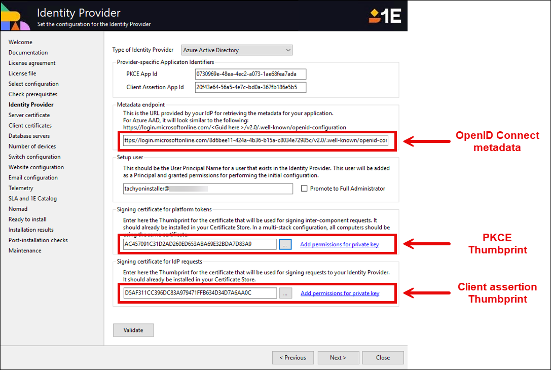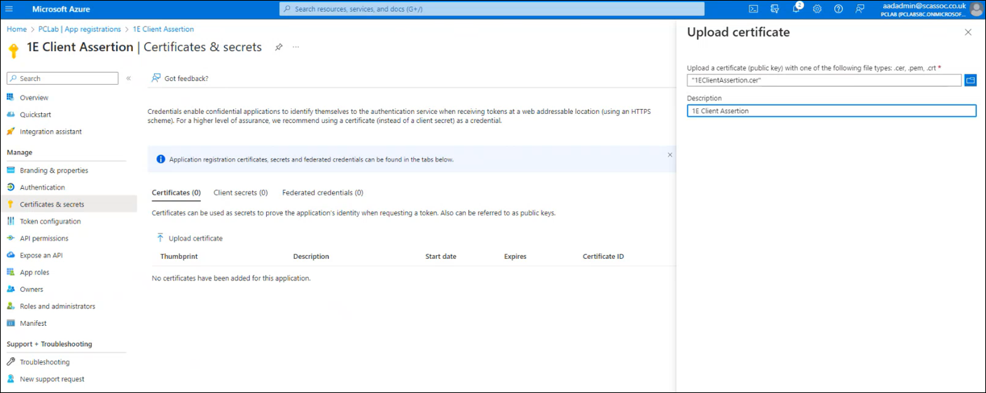 1E Client certificate requirements