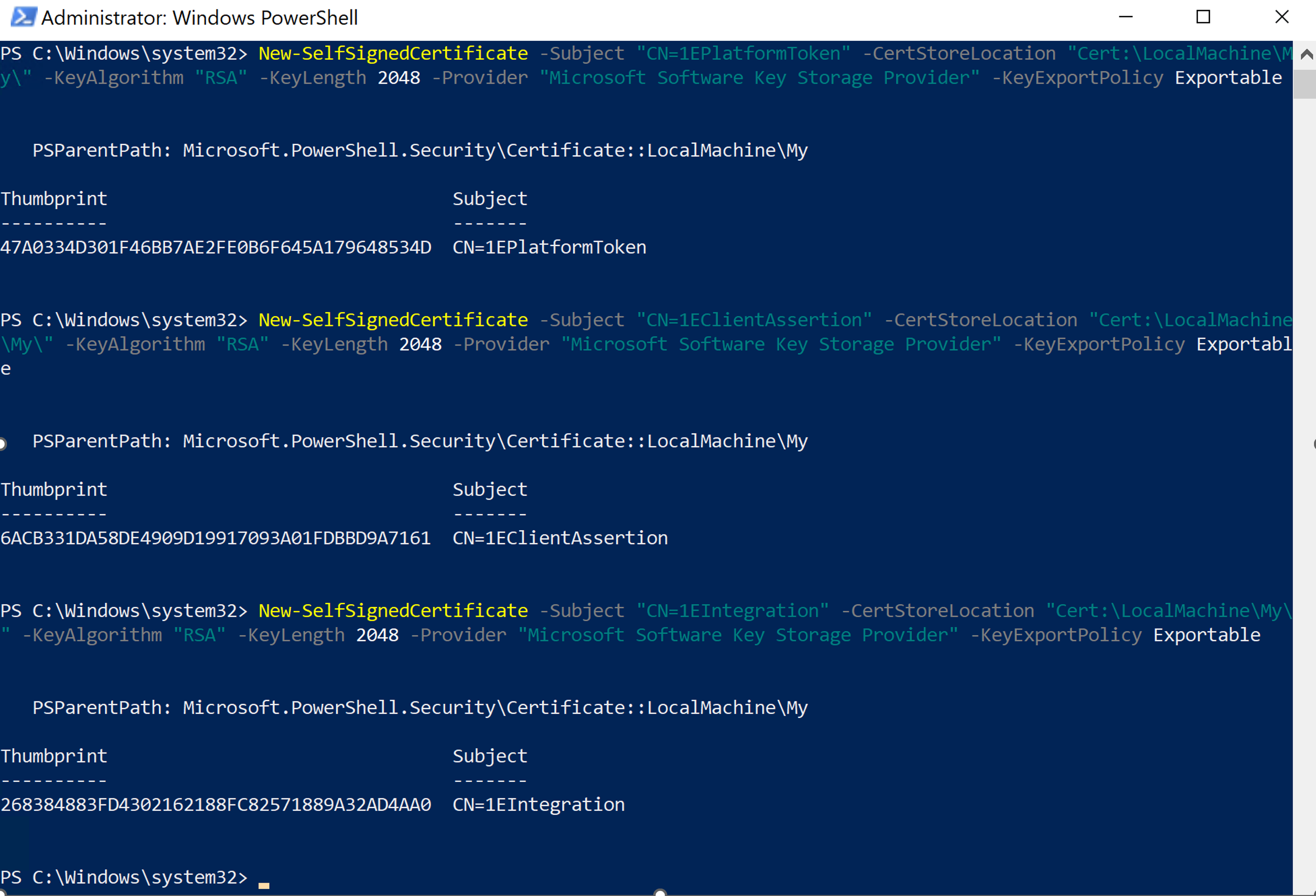 Configuring the Non-Windows 1E certificate using OpenSSL
