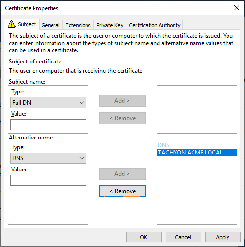 First, you will need to have created a new Certificate template on your Certificate Authority by making a duplicate of either the Computer or Workstation template and configuring it with at least the following properties: